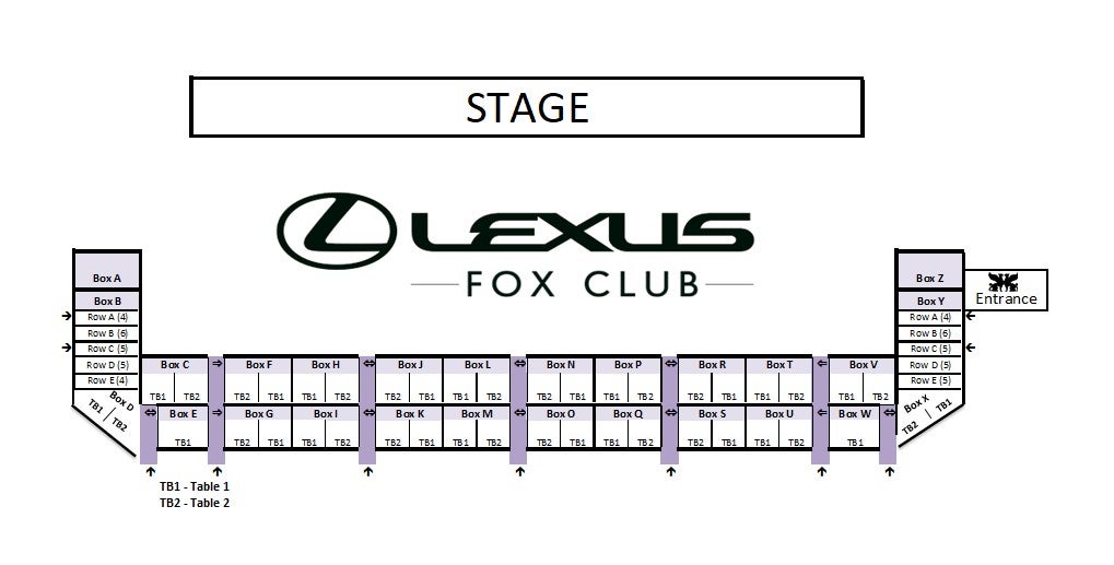 - Seating in the Lexus Fox Club Luxury Boxes is assigned; please do not move to other seats that appear to be open.